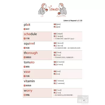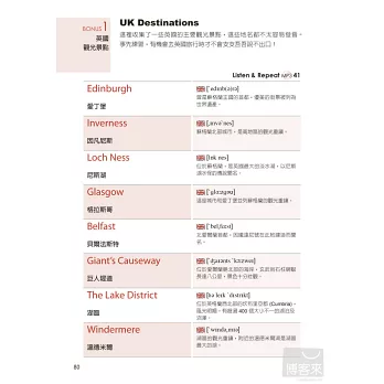 收錄八大領域︰蔬菜、糖果、道路交通、汽車零件、衣服包包、鞋子、職業、學校教育,詳細介紹英美在用語及發音上的差異,讓你從差異中學會道地的英式用語。
