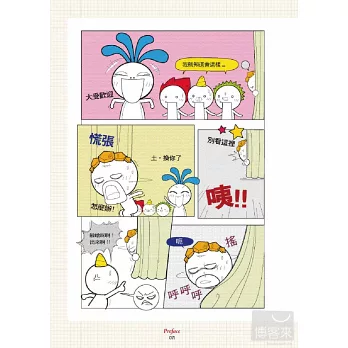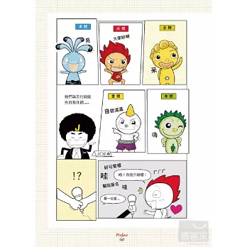 此外,為了讓讀者能夠清楚了解並提升家人的閱讀的興致,特別以輕鬆詼諧的漫畫手法來呈現,希望讀者們會喜歡。最後,感謝王滋珮與張智偉賦予五行娃娃生命力,以及家人與好友的支持。