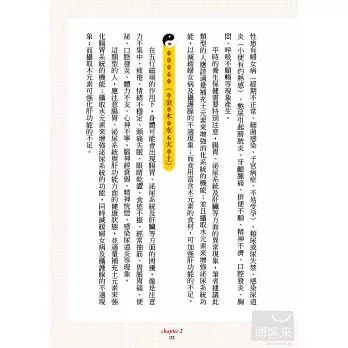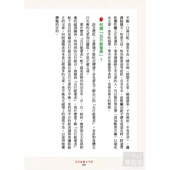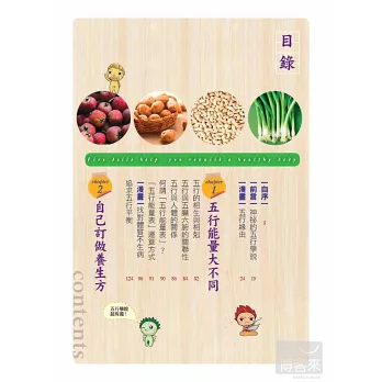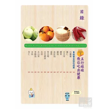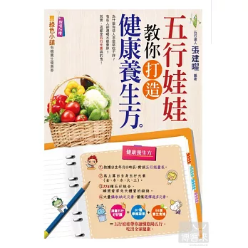 張建曜老師藉由金、木、水、火、土所延伸出來的五行娃娃,教讀者如何吃對食材不生病,同時列出常見的97種蔬果、58道料理,帶你調和陰陽治百病,吃出排毒抗病力。