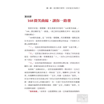 「一六八微笑曲線」就是讓你的股票在不漲的「一」字線形時,還能賺「六」%以上,大漲時獲利至少高達「八」成,不論漲、跌或是「不漲」,你都開心。