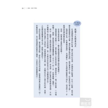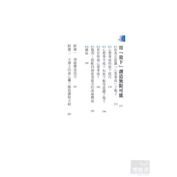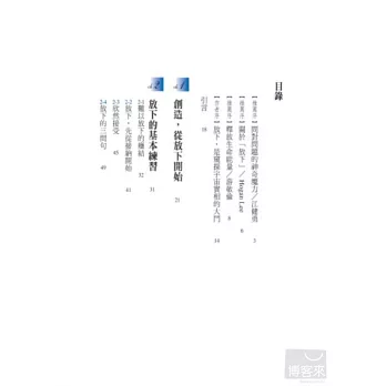 不論你是真的為「放不下」所苦惱,或是為還不會「放下」而困窘,那都不要緊。因為本書作者以過來人的身分,細述著他個人於「放下」之旅的學習與體會;再加上他個人多年鑽研於身心靈等諸多專業領域,有著與「放下」之間的奧妙啟發與深入聯想;不僅如此,為了讓讀者們更能理解本書所要闡揚的義理,頗具巧思地,作者還輔以古今中外的經典佳句與名人雋語,以及淺顯易懂、妙趣橫生的比喻或故事。