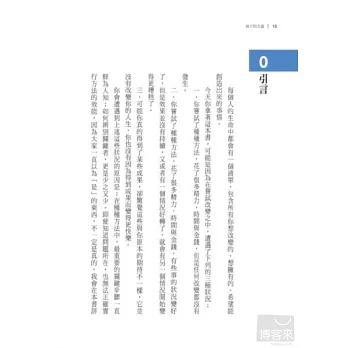 你會遭遇到上述這些狀況的原因是:在種種方法中,最重要的關鍵步驟一直鮮為人知;如何辨別關鍵者,更是少之又少。即便知道問題所在,也無法正確實行方法的效能,因為大家一直以為「是」的東西,不一定是真的。我會在本書詳細解說,只要掌握正確的方法,那麼上述問題通通能迎刃而解。