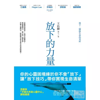 但是,放下的道理說來容易做來卻不簡單,尤其是身處問題核心的當事者,往往無法看清真相、釐清原由、順利脫身。而且,放下應該是力量的凝聚、是機會的誕生、是內在潛能的發揮,而不是無力退卻,更不是絕望放棄。因此,如何放下實在是大智慧啊!難得看到王博士所著作的《放下的力量》,正是針對現代人的需要,協助人們找到放下的方法、發揮放下的力量的最佳行動指南。