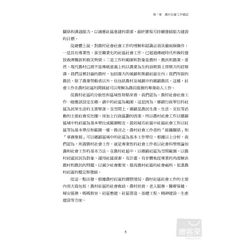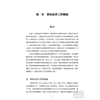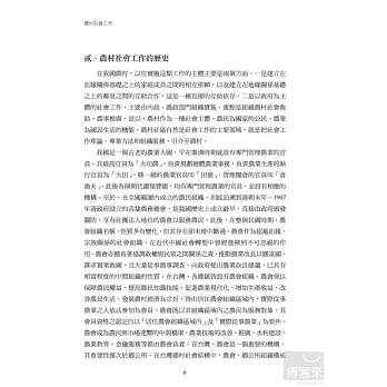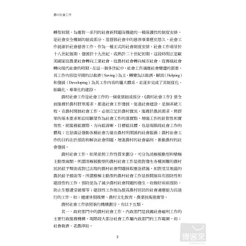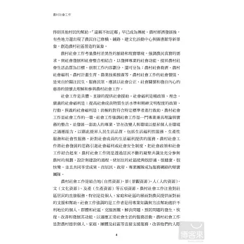 《農村社會工作》是屬於社會工作專業範疇之一。結合歷史與現實的有機連繫,引導深入理解農民與農村社會的關係,從而實現社會工作的服務價值——關注民生、服務農民。學習農村社會工作宜把握理論與實踐的相互依存關係,既能系統地梳理農村社會工作的歷史脈絡和現實環境,也能深入地認識農村社會工作各種理念、理論、價值觀、實務模式和方法技巧等。旨在使閱讀者能根據社會情境、歷史分析,整合地思考農村社會工作的介入模式。
