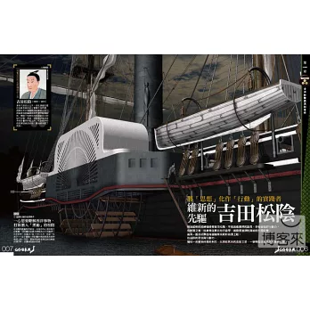本書從啟發高杉晉作的故鄉──荻開始重現,晉作在19歲時成為吉田松陰的學生,命運也產生了重大的轉折,在這裡讀者可藉由CG技術的重現,一窺私塾的擺設與位置圖;吉田松陰被判處死刑後,高杉晉作踏上了旅途,跟隨他的腳步,看見十九世紀西風東漸的日本,一起感受船堅砲利的入侵,以及當時的維新志士們內心所懷抱的滿腔熱血與激情。