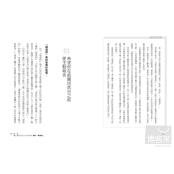 要主動察覺並達成主管的要求,勢必得先確實掌握主管究竟對自己有何期待,否則不但永遠無法拉近雙方的認知落差,還可能因誤解而走了許多冤枉路。為避免這種事發生,本書將與身為下屬的各位站在同一陣線,教導各位如何去理解主管的要求與其要求的背景,掌握其真正心意,提供最有效的解決方法。