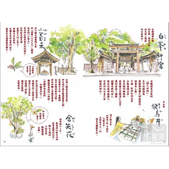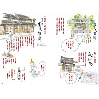 這本書讓我自由自在地畫著平時漫步其間的街道,在您當作旅遊書參考之後,請務必遠離書裡描繪的路線,驚奇於迷路的感覺吧!盡情使用自己的雙腳與五感,您將體會開車旅遊所無法帶來的邂逅與新奇事物。