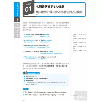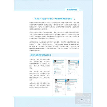 本書以不同於其他書的解說為驕傲。除了理論說明以外,解題的部分比起任何書也更詳細。例如新多益考試的公告題、廣告題、信件題等,詳細說明各種題型的出題方向,5秒解決新多益。