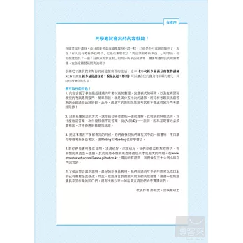 2. 自我診斷掌握弱點│不同於坊間填鴨式的模擬試題,本書的自我診斷能讓你迅速掌握弱點,瞭解不足的地方並加以補強。