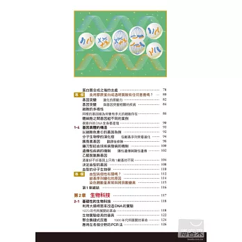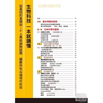 全書彩色圖解。循序漸進的分章節介紹生物科技的原理與觀念,再搭配彩色圖片和淺顯易懂的解釋,只要讀完這一本,生物科技就全部搞懂囉!