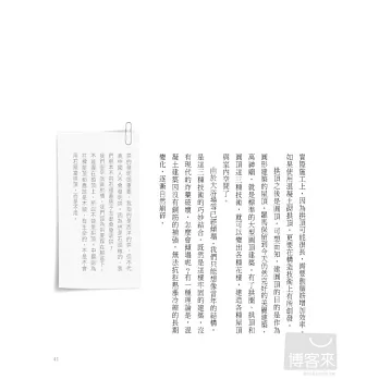 在大學上課是沒有講義的。但是這十堂課雖然很短,卻涵蓋了在課堂上的三門課:中國建築史、西洋建築史、現代建築史,還加上當代建築。這樣廣大的內容,收納在短短的十次演講中,我必須先打好稿子,才能對得起聽眾,他們很可能是抱著很高的期望前來聽講的。我寫講義的另一個想法是,也許可以上課時發給他們,供他們回家後複習,再聽下一堂。