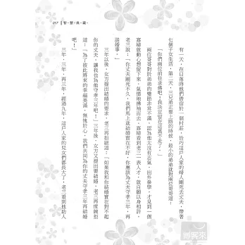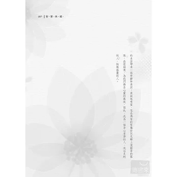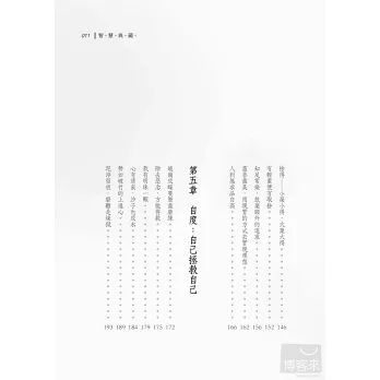 本書寫佛家智慧,寫得不是「空」,也不是「色」,而是選取佛家與現實人生密切融合在一切的人生智慧,諸如慈悲、清淨、忍讓、捨棄、精進、超脫等,結合最經典的一百多則佛家智慧故事,在精析佛理的同時,結合現實人生的種種境遇,使得高深莫測、晦澀難懂的佛典如同娓娓道來的家常話語,讓人有所思有所悟。