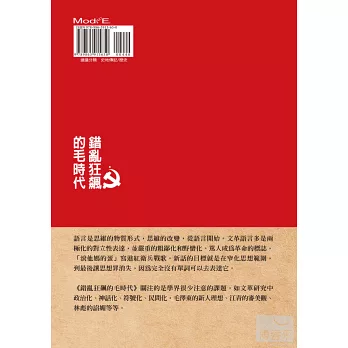 本書所關注的是學界很少注意的課題,如文革研究中政治化、神話化、符號化、民間化,毛澤東的新人理想、江青的審美觀、林彪的諂媚等等。