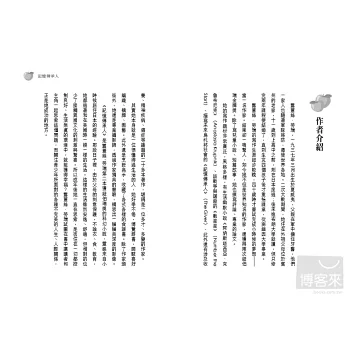 經過漫長二十年的積澱,先後於一九九0年與一九九四年以《數星星》(Number the Stars)和《記憶傳承人》(The Giver)兩部作品,兩次榮獲紐伯瑞金牌獎的青少年小說大家露薏絲.勞瑞(Lois Lowry),終於在二0一二年,七十五歲高齡時完成理想國四部曲。《記憶傳承人》於一九九三年出版後即好評不斷,不久就得到紐伯瑞獎;二千年完成《歷史剌繡人》(Gathering Blue);二00四年我們讀到《森林送信人》(The Messenger);二0一二年《我兒佳比》(Son)問世。