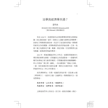 作者在書中以詰問的方式,言簡意賅地揭露經濟學者的思辨歷程,不僅可為深層思索判斷的參考座標,同時指引了一條進入法律經濟學的最佳途徑。