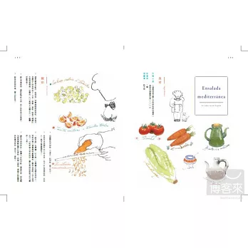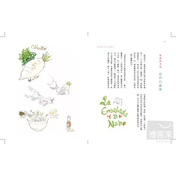 ★以生活隨筆結合手繪插畫,收錄了台南媽媽、山東爸爸、以及另一個故鄉—西班牙的家常料理,不論是童年熟悉的早期台灣菜,還是充滿異國風味的西班牙小點,讀來皆令人垂涎欲滴。