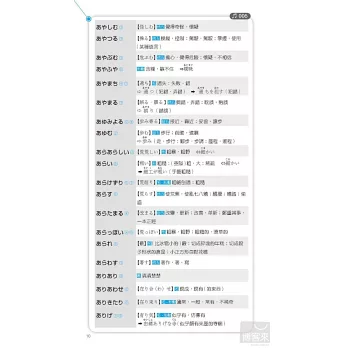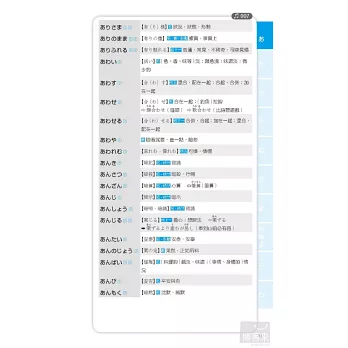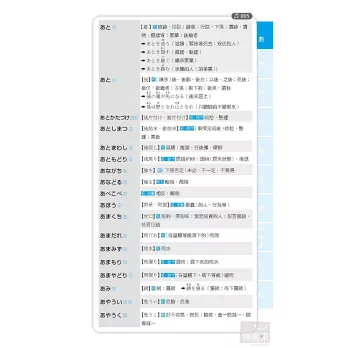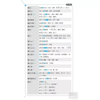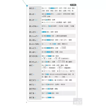 清楚標示詞性、重音:字彙假名之後接上重音、詞性、漢字或外來語字源,以及依重要性排列的中譯,一次背足完整資訊,條理清楚,一次就上手。