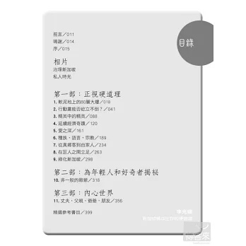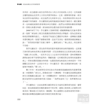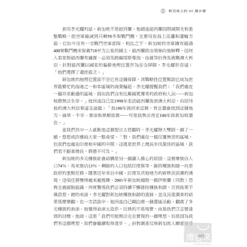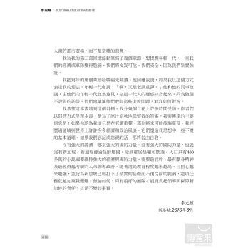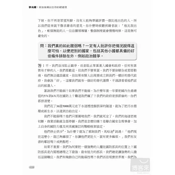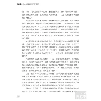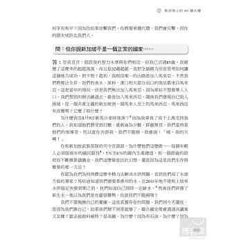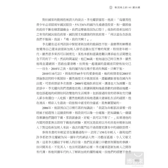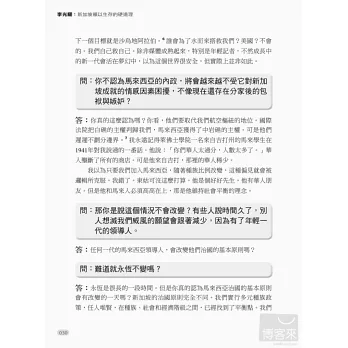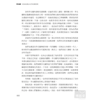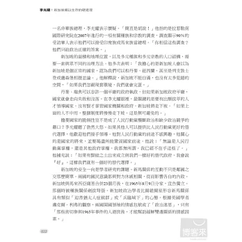 李光耀是新加坡最具影響力的人,但他也不乏批評者。面對四面八方的批評,他總是迎面痛擊,從來不畏首畏尾,60年來皆如此。他為什麼要對他的政治對手擺出一副強勢的姿態呢?新加坡會不會走向民主,人民行動黨是否會倒台?年輕的領導團隊勝任有餘嗎?新加坡人宗教意識的提高將如何影響國家?中國和印度的崛起將如何影響新加坡的繁榮?李光耀和他的同僚帶著人民的希望辛苦建立起新加坡這個彈丸小島,如今他借鑒過去的經驗,展望對國家未來的期許,為我們一一回答這些問題。