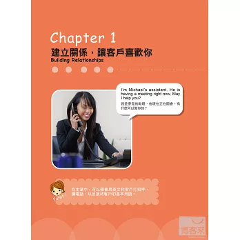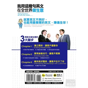 做生意時需要說的英文,主要有「建立關係、談判銷售、維持關係」3大重點。本書完整收錄這3大方向中需要用到的英文,分為30個狀況,也就是30個用英文做生意的必勝祕訣。