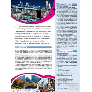 書中每篇內容均附英文導讀音檔。這些都市玩些什麼,怎麼玩,就由專業美籍老師帶你玩遍全美國,讓你邊聽邊說,練習道地美國口音外,還能理解最新時下美國人的用語。