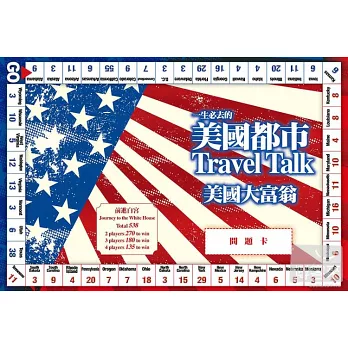 ● 「大富翁之美國旅遊通」益智遊戲(內含:遊戲圖+72張問題字卡+遊戲說明):回答33個美國都市相關問題,答題累積最多積分,不僅佔領全美國,還能成為真正美國都市通!一款遊戲四種玩法,想和朋友較勁或是測試自己的英文程度都適合!