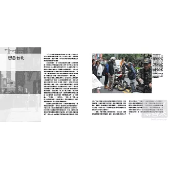 在《攝影的人,在路上》裡,除了為此新版所寫的作者序,顧錚也特別加上一篇〈街頭攝影發展小史〉,扼要地勾勒了攝影史上有代表性的街頭∕城市攝影家,是很有價值的參考文獻。他在書末,也提供了最新的幾幅黑白攝影作品,我認為幾乎張張皆是精品。顧錚在最後〈想念台北〉一節,則展示了一些他在台北停留時的街頭影像。對照著居住地上海的作品,別有另一番情趣。
