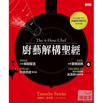 《身體調校聖經》作者提摩西.費里斯回來了!秉持「最低有效劑量」的信念──花最少時間、獲得最大效果──這一次,他拿起鍋子與量杯,走進西班牙分子廚藝的廚房、一直到加爾各答的魚市場,尋求最可靠的烹飪知識;從基本的切菜方法、到你從沒聽過的「凍煎盤」技術,他都將親自實驗、一一拆解。看完三道食譜,你一定會說:「哇嗚,我從沒想過原來還可以這樣做!」