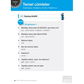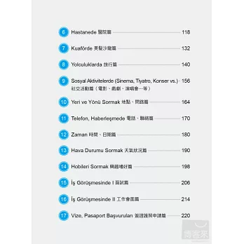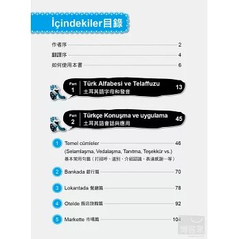 3.最完整的生活會話:Part 2除了基本打招呼、寒暄用語,更羅列各種在土耳其生活所有場景會話,功能最完整,一書在手,在土耳其暢行無阻!