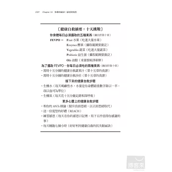 這也是為什麼我要寫這本書:幫助我自己,也同時幫助你。我想和你分享我學到的知識,我想告訴大家為什麼只靠三步驟便能改變一生。你將經歷一場屬於個人的健康自救革命!你將活力充沛地醒來;體重減輕;消化力和如廁經驗獲得改善;擺脫疼痛的毛病;體力好到足以抵擋季節性、慢性或致命性疾病;擁有更安穩的睡眠;性欲提升;終於能好好享受你從來沒有享受過的人生。許多人不知道自己失去了什麼,因為他們不知道原來它可以這麼美好──他們不知道人生與健康的真諦。