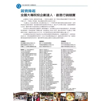 本書以「企劃達人創意行銷競賽」之獲獎作品為範例,從理論篇、應用篇到個案篇,邀請相關領域之學界、業界專業師資進行評析,透過各種多元觀點的分析,可提供讀者參考並從中訓練企劃整合能力,進而寫出創意又具執行力的企劃書。