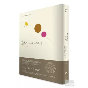 在令人疲憊的婚姻結束之後,作者在義大利、印尼、印度等三個不同國度之間尋找自己。108個短篇象徵了靈魂探索、自我發現之旅:到義大利品嘗感官的滿足,在世上最好的披薩與酒的陪伴下,靈魂就此再生。她再到了印度,與瑜珈士的接觸,洗滌了她混亂的身心。峇里島上,她尋得了身心的平衡。