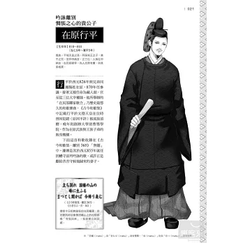 由多位同人作家攜手執筆,並邀請到門地□□□老師繪製封面,圖解64位平安朝的知名人物,包括天皇、大臣、武將、歌人與僧侶等,讓讀者可以輕鬆了解當時的時代背景與人物特色。