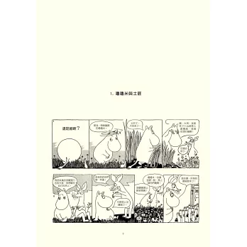 擅長以視覺發想故事的朵貝楊笙,當然也專精以漫畫說故事。由於缺少了童話系列的文字描述,「嚕嚕米漫畫」跟「嚕嚕米童話」不同,沒有詩意的大自然靜態描寫,而是以情節為重的「動作片」。畫風洗練的朵貝楊笙,以《嚕嚕米》的角色為班底,運用漫畫文類特有的誇張、荒誕的元素,編織出一個個喜劇色彩濃烈、劇情緊湊、惹人笑聲連連的故事。喜歡嚕嚕米童話角色的小朋友和大朋友們,大可關掉「教誨」、「寓意」與「詮釋」的理性之窗,欣賞著漫畫中角色豐富、逗趣的表情,跟著嚕嚕米一家去冒險,盡情享受熱鬧、多變、天馬行空的情節。