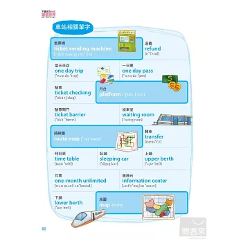每個情境都列舉出最常用到的單字與會話,並且補充數則實境對話,讓你在出國前就能先實際演練,實際遇到狀況時也不驚慌失措。