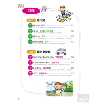 在國外,要會的英文不用多,只要能夠溝通就夠了。本書每個情境中都列舉出使用頻率最高的相關例句,句句都是臨時最需要的那一句話。