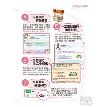 除了不學不可的英文單字與會話外,本書更貼心設計了一般書本上學習不到的知識補充與國情風俗不同等注意事項,讓你變身成最道地的國外通。