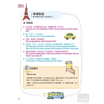 模擬情境對話學習,幫助讀者融入情境,迅速掌握和外國人對話的應對技巧,讓你邊學習邊演練,實際遇到狀況都能臨為不亂,輕鬆應對。