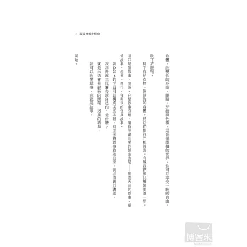 當母親燒掉珍奈視之如命、偷偷藏在床墊底下的那些文學書,她領悟了一件事情:「外在的任何事物都可以隨時被拿走,只有你內裡的東西才安全。」從此之後,她努力建築內在的圖書館。 正常就好,何必快樂:當代最好也最具爭議性的作家,珍奈.溫特森自傳 正常就好, more你的身體就是我的時間之書