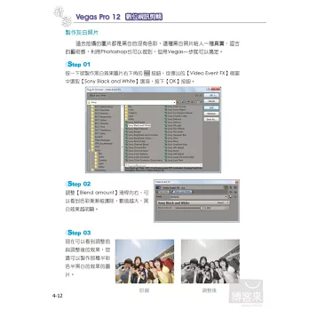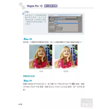作者以其從事視覺創作多年的經驗來撰寫本書,將技法與實務作完美的結合與應用,激發您創意的發想與設計的實現。課程安排由淺入深,語言平實易懂,範例美觀實用,帶領初學者逐步進入Vegas Pro 12的影音剪輯製作殿堂。在每每完成一個階段的學習安排之後,各位讀者都可以看見自己的範例練習成果,不斷提升設計掌握能力,成為優秀的影視後期製作達人。