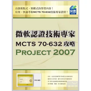 本書以學習者考照取向的觀點,提供有效、快速考取MCTS 70-632 Project攻略教材。內容包涵MCTS 70-632考照重點,利用圖形化、表格化,再搭配完整架構口訣,讓學習者能夠快速吸收重點。
