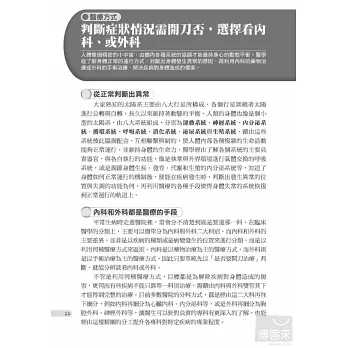 現代人有幸擁有進步的醫學和醫療體系,守護健康,延長壽命,但要活得久、活得好,卻不能只靠醫生,還要進一步參與自己身體的醫療權利,才不會因無知而畏懼權威,看了醫生卻不認同治療做法。如果能懂得醫學是怎麼回事,了解醫院的醫療體系如何分科分工、醫學和醫療的能與不能,也才能充分善用現代的醫學資源。