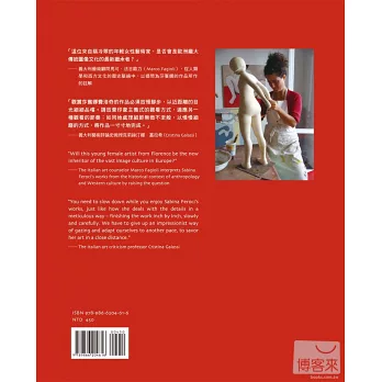 莎賓娜費洛奇,一九七一年出生於義大利翡冷翠的鄉間小鎮格拉悉娜。這位女性藝術家把她徜徉在托斯卡尼丘陵谷地富饒田野風光的童年時期、完整保留文藝復興菁華的翡冷翠求學的少年時期、以及於米開朗基羅深深迷戀的大理石山城卡拉拉居住至今的生活,與自己的創作旅程交織成作品,並透過這些作品表現出她眼中世界所嶄露的迷人風貌。