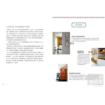 ◇不花大錢的創意改造:書中的案例大部分都沒有另請設計師進行裝潢,而是主人們親自動手、發揮創意所展現的成果。主題統一的照片、調味料、香草植物等,隨手小物都可能成為最好的裝飾品。