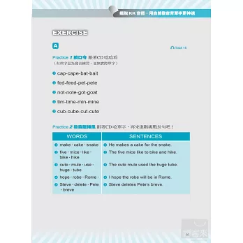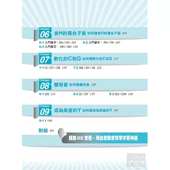 清楚解說各種發音規則,不需要死記一堆例外,只要學會母音發音其實就掌握了說英文的關鍵。