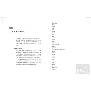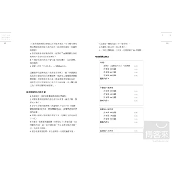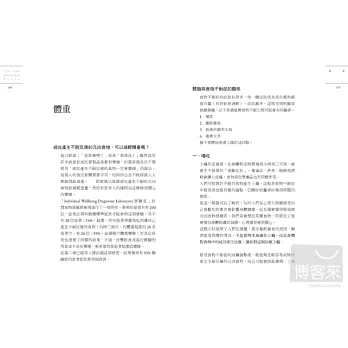 書中有多份檢測問卷表,提供大家評估自己的健康狀態,相信能讓大家越來越健康。
