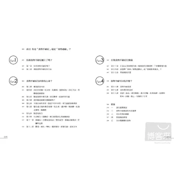 四.本書提供一系列打敗食物不耐症的「修復行動」,提升腸胃道健康與消化能力。我邀請了名廚「安托奈特.塞維爾」編寫一套美味食譜,食譜中已去除各種容易引發不耐反應的食材,希望改變飲食的這件事能越簡單越好。要轉變行之多年的飲食習慣並不容易,如果問題是出在食物不耐症,我們有信心可以幫助你擺脫它的困擾。