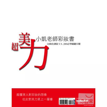 B本:28位素人彩妝步驟,不同領域,不同故事,經由小凱老師精闢改造之前後對照。在素人女性平凡卻精采的故事之間,加入小凱老師純熟的彩妝技巧,超過200個必學的彩妝關鍵步驟,簡單的底妝技法,就可讓你擁有好氣色,令人眼睛一亮的改頭換面。