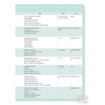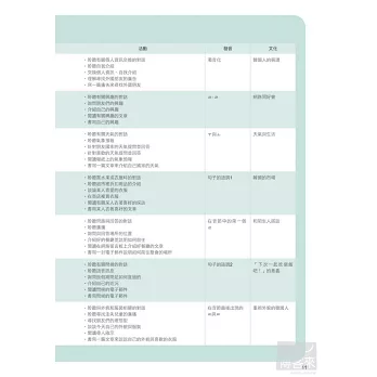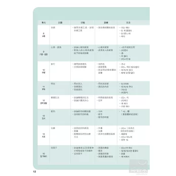 12.文法 匯集課程中出現的文法,用深入淺出的方式解說,加上例句和練習的輔助,能更加熟悉文法的應用方式。