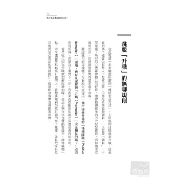 拋開『升遷』的制式規則、專於正業之外,尋求『複業』、不時為下一份工作播種、將抽屜淨空、沒有辦公桌也能工作、定時結束工作……