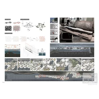 每位同學皆有四面的作品內容,包含概念發想、發展分析圖、建築圖面,以及未來想像圖等。